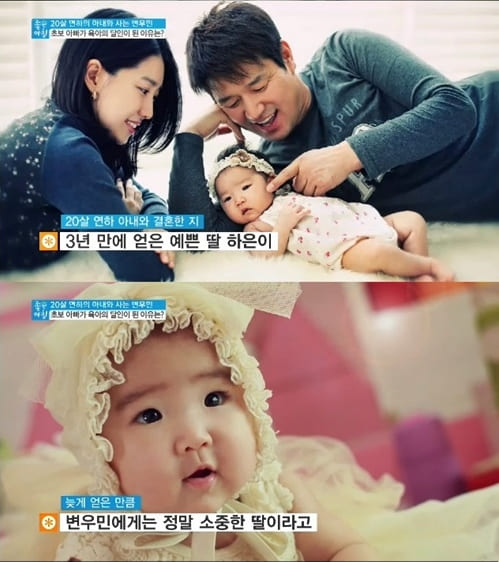 변우민은 아내 김효진과 19살 나이차이가 났고 결혼 전 걱정을 하였지만 아내가 먼저 결혼을 하자고 했다고 합니다. 하지만 아내의 집안에서는 반대가 아주 심했다고 하는데 장모님이 울면서 찾아와 딸을 만나지 말라고 부탁할 정도였다고 하네요. 1년을 설득했지만 결국 실패했고 그렇게 결혼을 하였으며 둘 사이 2013년 딸을 낳게 되었죠. 하지만 김효진은 산후우울증이 심했다고 변우민이 다 받아주며 힘든 시기를 잘 넘겼다고 합니다.