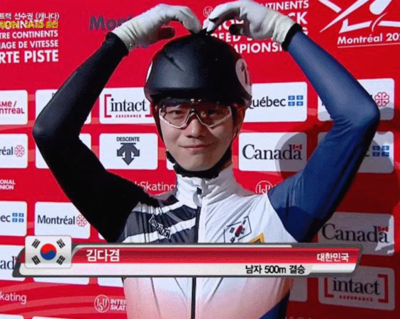 김다겸선수는 대한민국 쇼트트랙 스피드 스케이팅 선수로 2019-20 시즌 국가대표 선발전 1차에서 3위, 2차 선발전에서 3위를 기록하며 세계선수권 개인전 멤버가 되었습니다. 당시 임효준이 2019 세계선수권 종합 우승을 기록하며 자동으로 선발이 되었고 그래서 김다겸은 세계선수권에 계주 멤버로만 출전할 수 있었는데, 이후 일어난 성희롱 사건으로 징계를 받아 자격 정지를 받게 되자 개인전 출전권을 얻게 되었죠. 임효준의 징계로 예비 멤버였던 김동욱이 월드컵 멤버로 들어오게 되었지만 코로나로 인해 대회가 취소되면서 이 모든건 의미가 없는 일이 되었습니다.